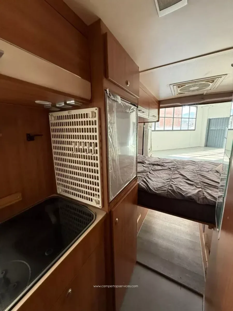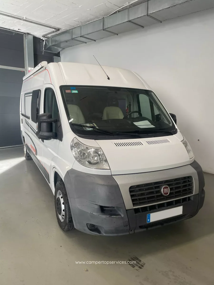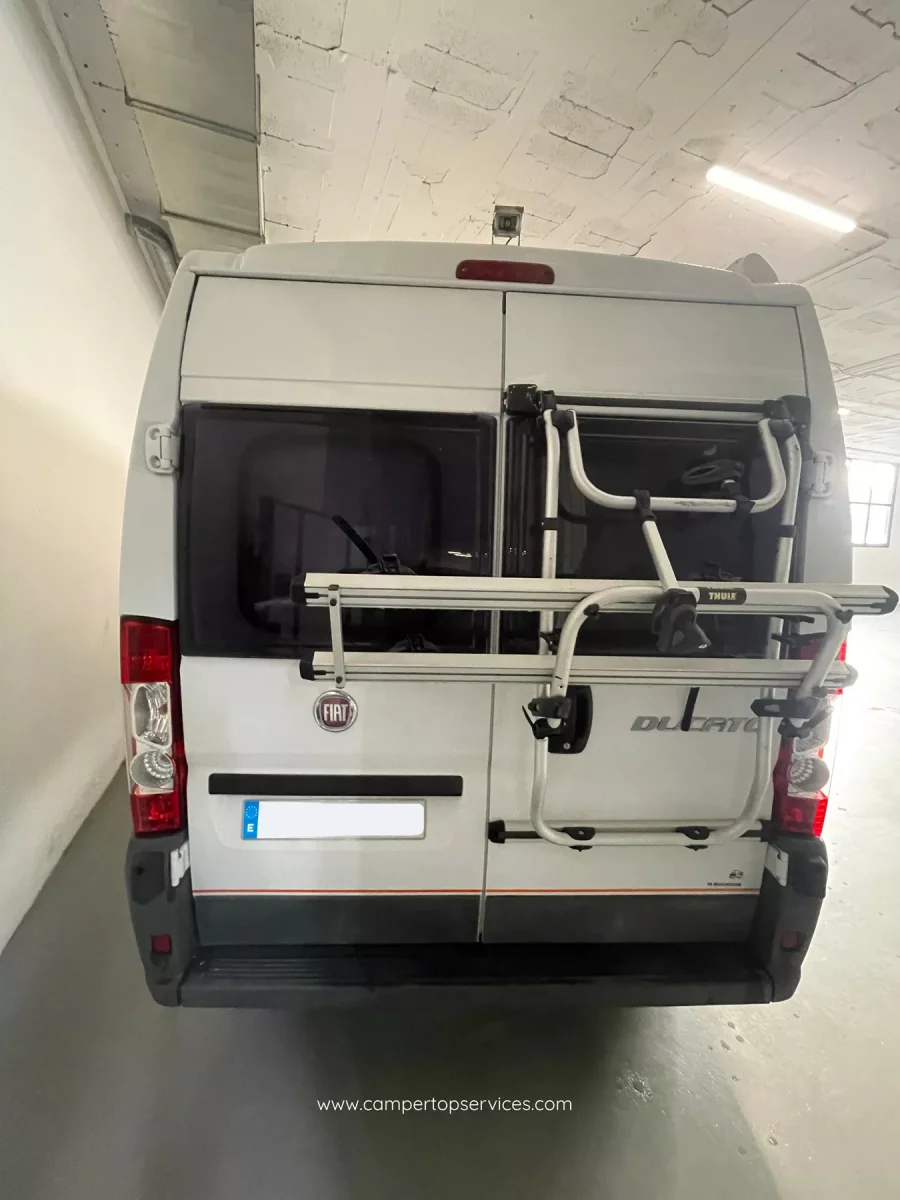 Es un vehículo particularmente cómodo con cuatro asientos y una cama doble trasera fija sobre el garaje. Cuenta con calefacción, centralita (para control de baterías, depósitos, bombas de agua etc), wc químico thetford en baño separado con ducha, armario de ropero grande, cámara de marcha atrás, cocina dos fuegos con fregadero, nevera nueva trivalente, focos les interiores, antena satélite, placa solar, toldo Fiamma lateral, oscurecedores remis en cabina, amplio almacenamiento, doble batería, toma exterior e interior de 220v, tomas interiores de 12v, portabicicletas y instalación de gas GLP Gaslow.