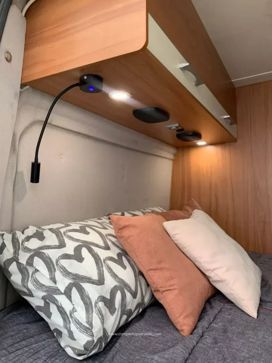 Batería auxiliar/12 V e iluminación LED para vida a bordo.