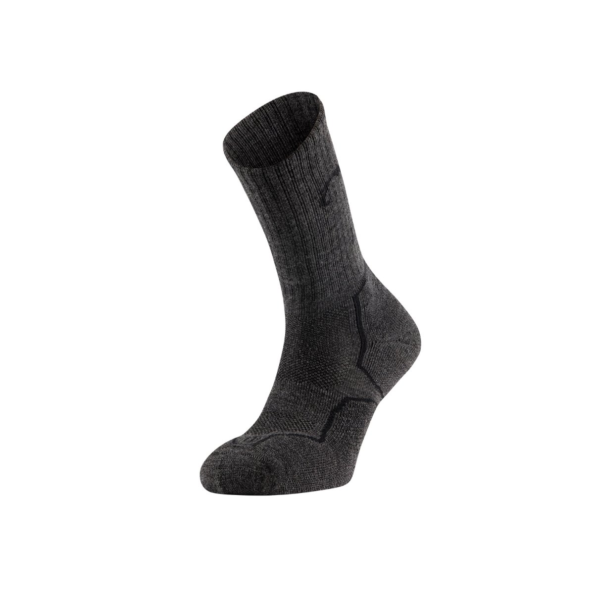 Los Lurbel Garo Five son calcetines térmicos unisex de altura H5 (12–18 cm sobre la zapatilla), ideales para senderismo en climas fríos y salidas de corta a media duración (hasta 5 h). Están confeccionados sin costuras perimetrales y cuentan con la tecnología Performance Merino, que favorece la termorregulación, evacuación del sudor y calidez natural. Su estructura plantar Total Cushioning proporciona amortiguación completa, mientras que la rejilla Antiodour Base Layer ofrece una doble protección antibacteriana y antiolor.