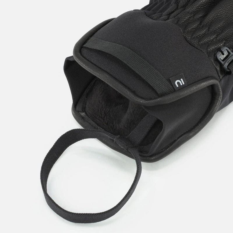 El manguito stretch facilita la colocación del guante, permitiendo que se deslice fácilmente sobre la mano y bajo la manga de la chaqueta sin generar molestias. Incluye un cordón de seguridad para sujetar los guantes a la muñeca y evitar su pérdida, además de una hebilla de emparejamiento para mantenerlos juntos cuando no se utilizan.