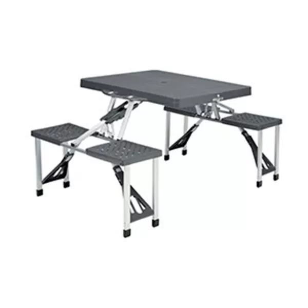Mesa plegable para 4 personas en aluminio y plástico. Montaje rápido en unos minutos.