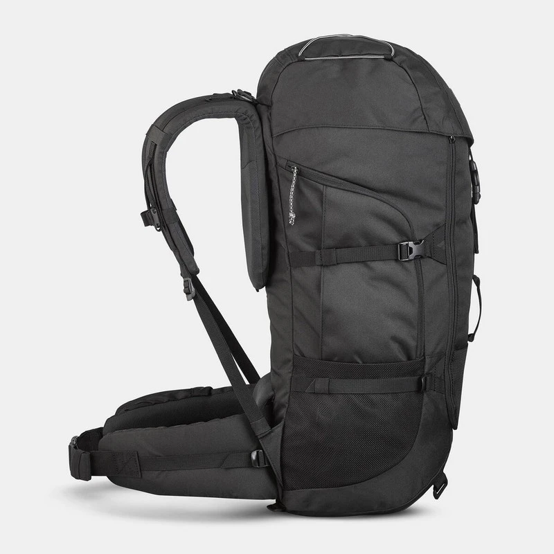 Bolsillos: 3 ext, 1 int, 1 cinturón. Portabastones. Acceso fondo y compartiment
