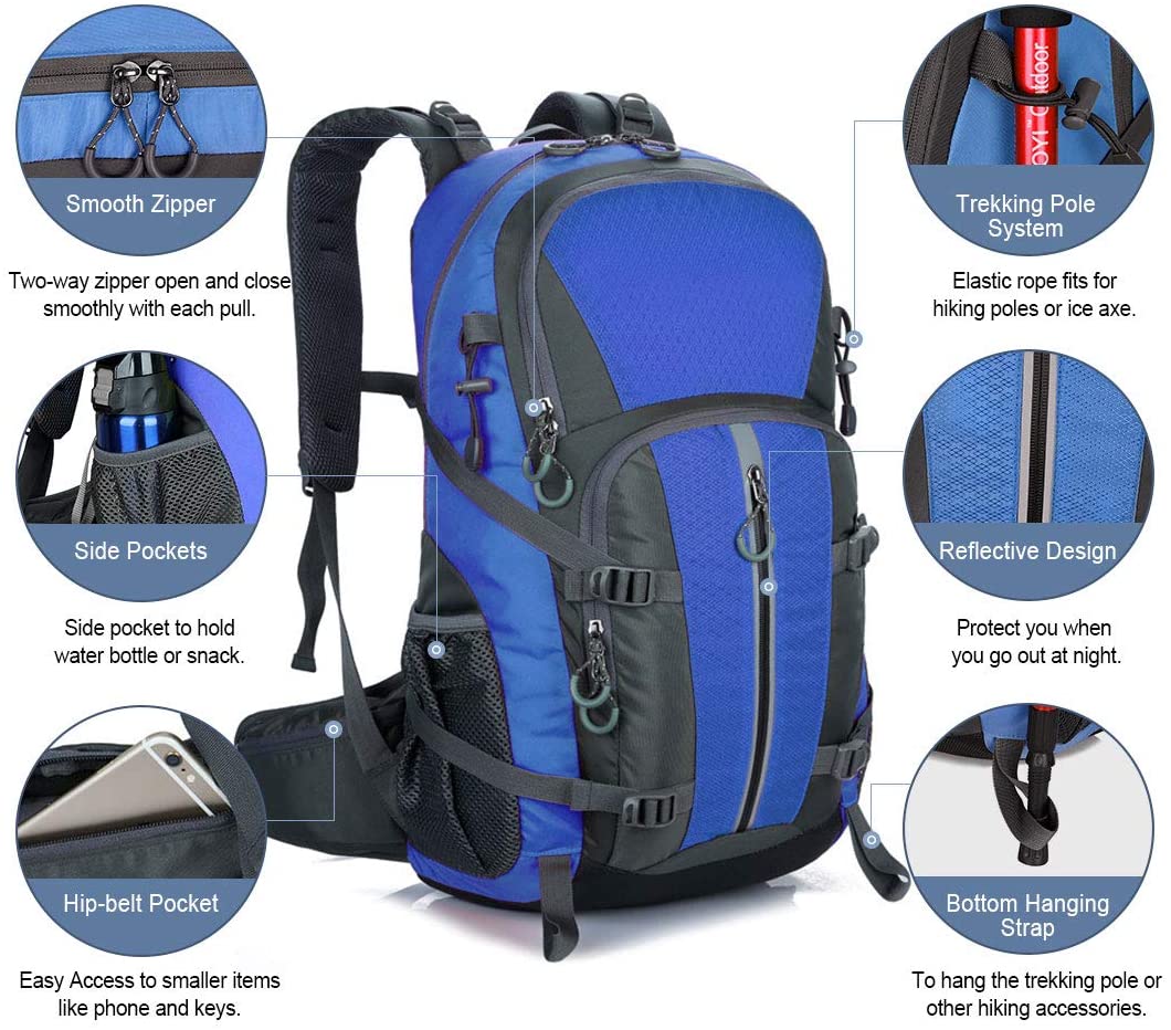 - ❤Suficiente Capacidad: 40L de espacio adecuado para 2 o 3 días de senderismo o campamento. Esta capacidad puede satisfacer todas sus necesidades diarias, como carpa, almohadilla de humedad, saco de dormir, bastones de trekking, ropa, zapatos de escalada, paraguas, iPad, portátil, taza, champú, cepillo de dientes, limpiador facial, kit de primeros auxilios, soga, comida, etc.