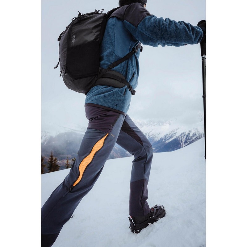 En invierno, es importante protegerse tanto de la humedad (nieve, lluvia) como del viento, ya que este último enfría enormemente el cuerpo, tanto durante la actividad como en reposo. El pantalón trekking tiene tejido exterior cortaviento y con tratamiento perlante para hacer frente a todas las condiciones invernales. También hemos añadido piezas sujetacordones para protegerte de las entradas de nieve.