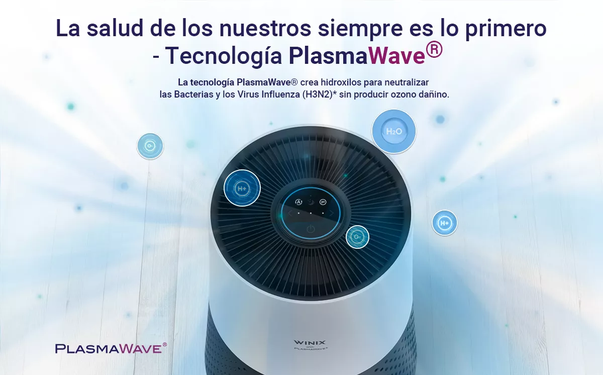 Elimina virus (incluido el SARS-COV-2 y sus variantes) y bacterias gracias a su tecnología WINIX PlasmaWave®.