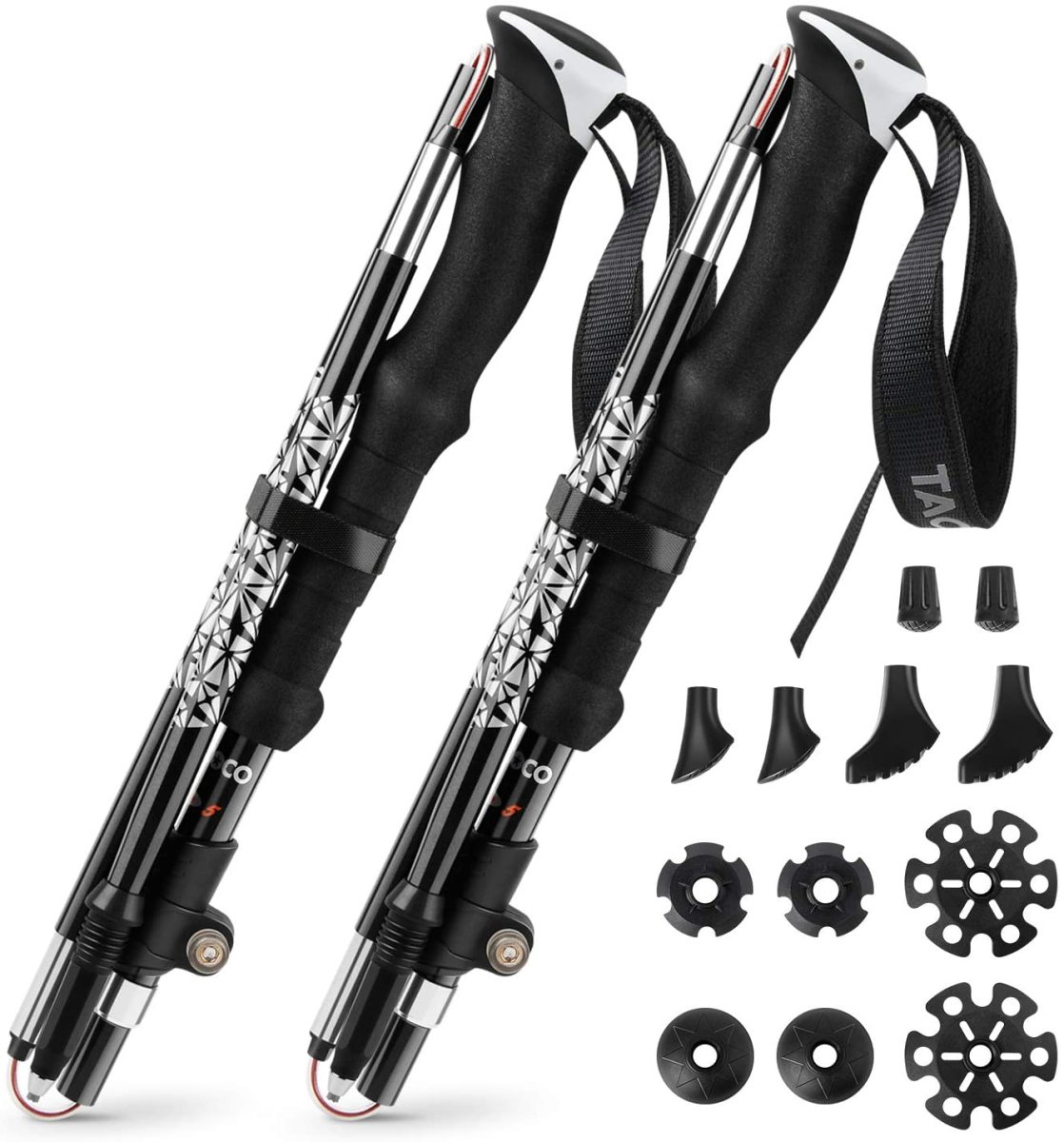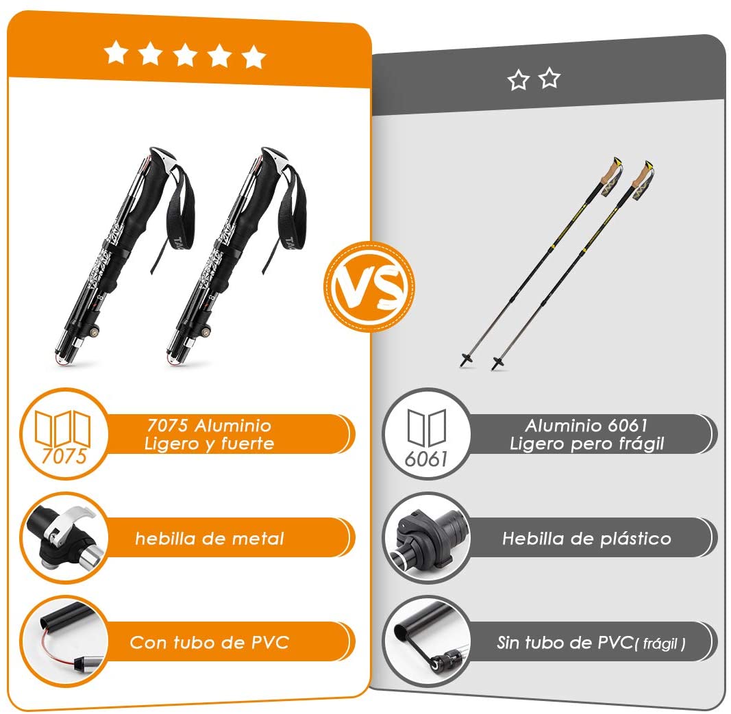 - ⛺【Hecho de aleación de aluminio 7075 resistente】 – El bastón está hecho de aleación ligera 7075 y tiene una de las mayores resistencias comúnmente utilizadas en la aviación. Los bastones de trekking 7075 de aluminio de TAOCOCO son más resistentes al estrés y al impacto que el carbono, lo que causa dolor en las articulaciones y los músculos y evita caídas al reducir drásticamente el equilibrio