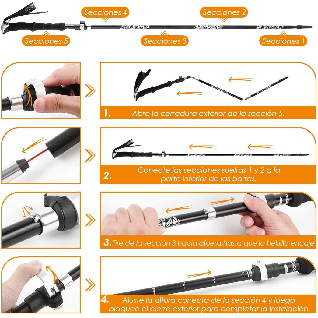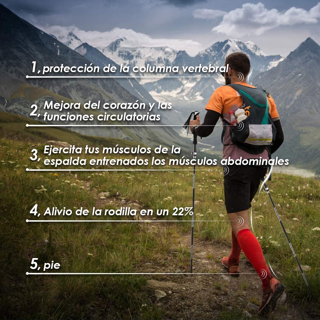 - ⛺【Ergonómico】: un mango ergonómico hecho de espuma EVA de alta densidad que se adapta a la forma de la mano. La espuma también absorbe el sudor de tus manos y te ayuda a mantener tus bastones más apretados. Pulsera ajustable transpirable para mayor seguridad y soporte en la posición de la mano.