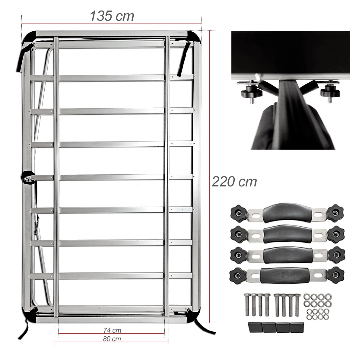 - Dimensiones cerrada: 220 x 135 x 23 cm.