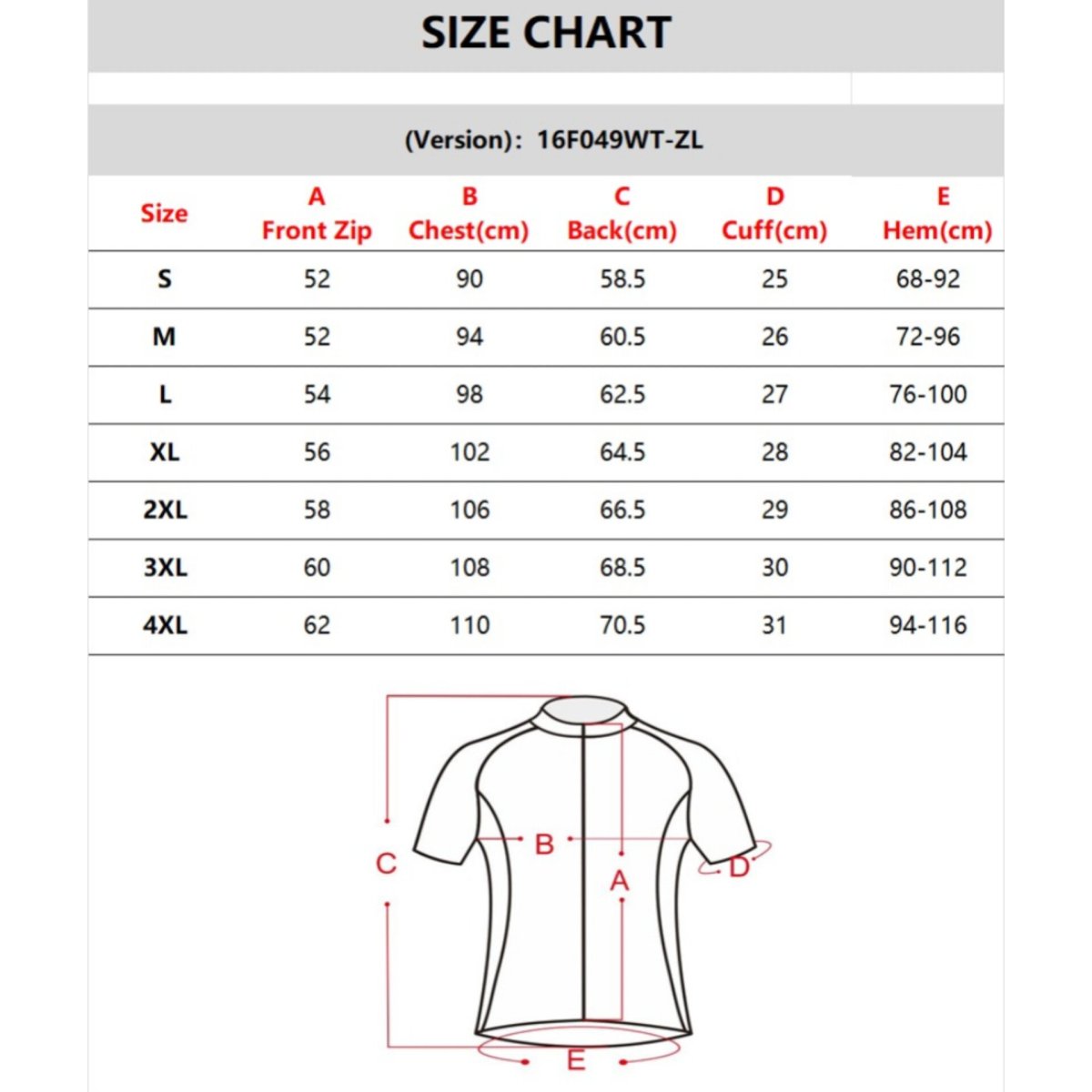 L, M, S, XS